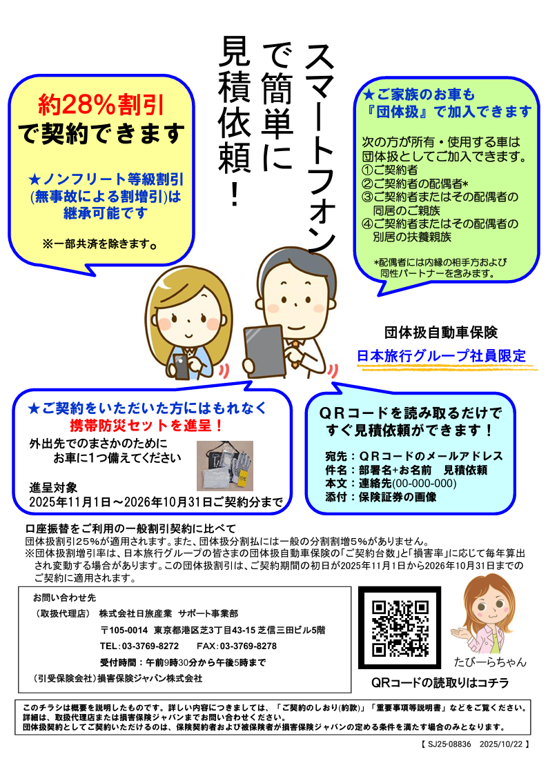 損害保険ジャパン(株)代理店(株)日旅産業サポート事業部
